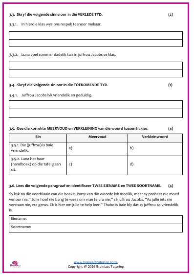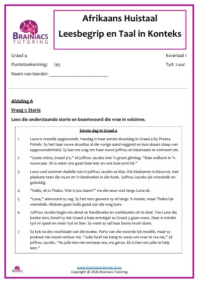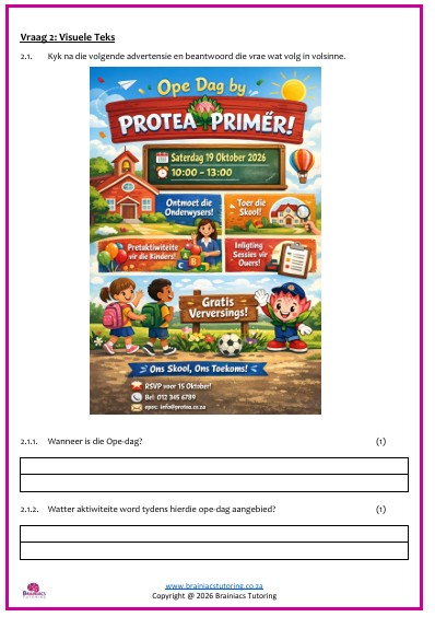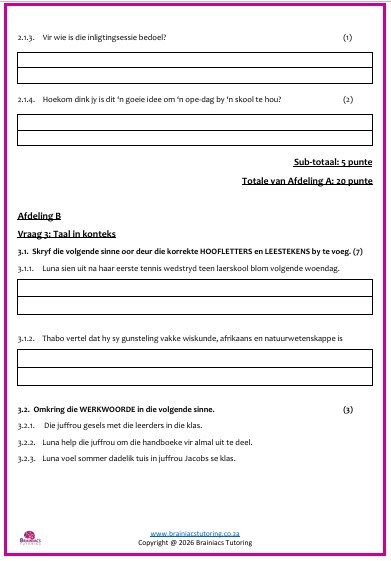 Hierdie Afrikaanse toets is volgens die 2024/25 ATPs. Dit behandel die volgende afdelings: