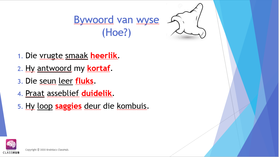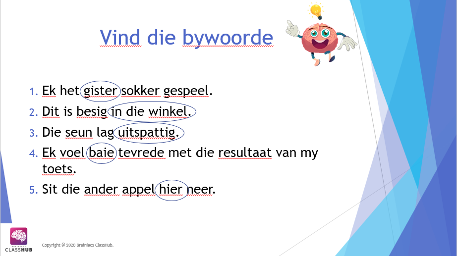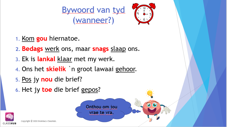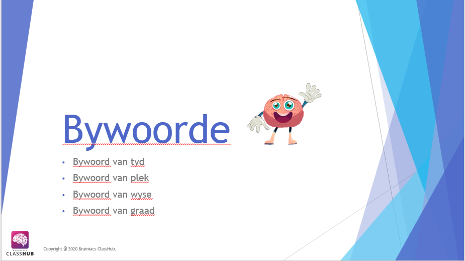 Hierdie PowerPoint vertoning bespreek die konsep van Bywoord van tyd, plek, wyse en graad.
