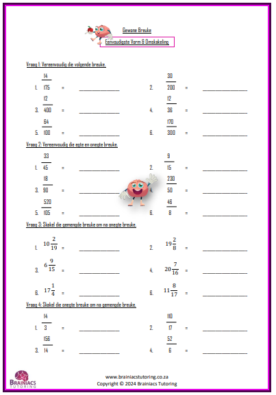 • Omskakeling: Gewone breuk, onegte breuk en gemengde getalle
