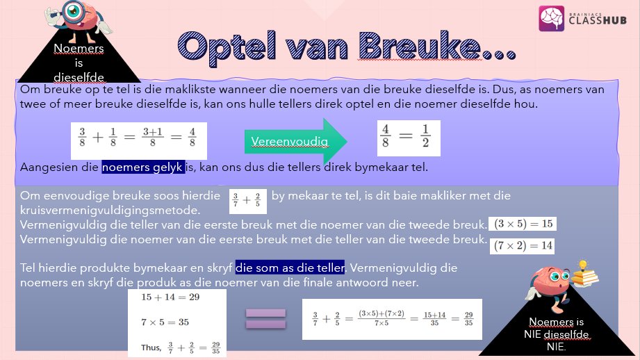 • Optel en aftrek van breuke