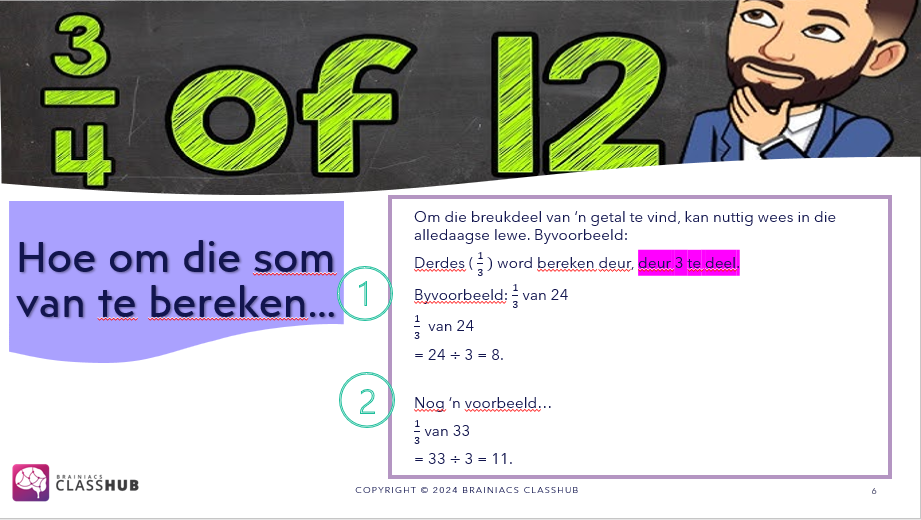 Elke onderwerp het ‘n werkkaart wat saam met dit gaan om leerders se vaardighede op te skerp. Die vertoningskyfies (PowerPoints) is visueel met interaktiewe Wiskunde liedjies ingesluit. Dit sal jou leerders vermaak en hulle aandag behou tydens jou les.