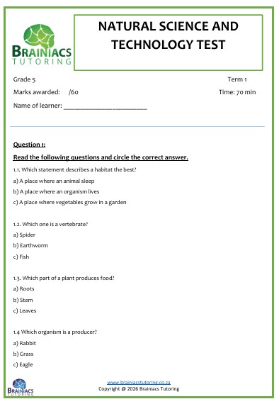 This tests covers concepts from Term 1. It counts 60 marks and comes with a memo. It is according to CAPS test guidelines for NST.