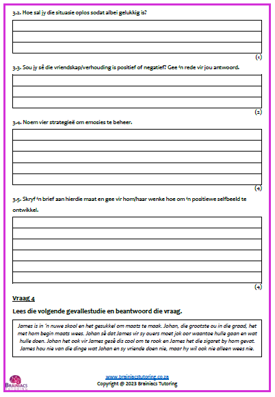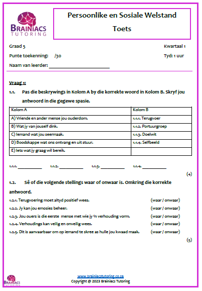 PSW (lewensvaardigheid) Toets – Gr.5 – Kwartaal 1