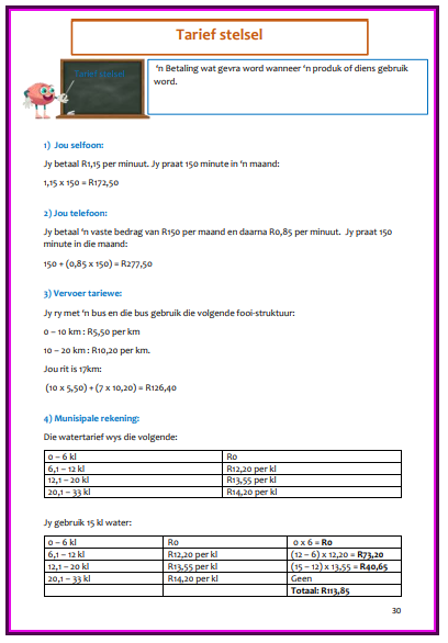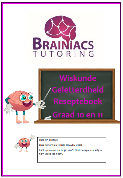 Hierdie resepteboek is ideaal vir leerders in Gr.10 en 11 en behandel die volgende Wiskunde geletterdheid onderwerpe: