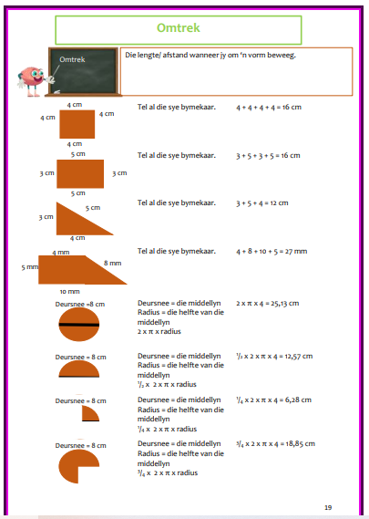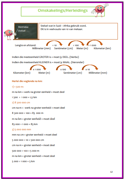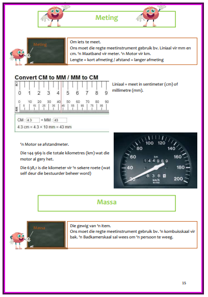 patrone en voorstellings - Meting: Herleiding, massa, volume, tyd, temperatuur, omtrek, oppervlak