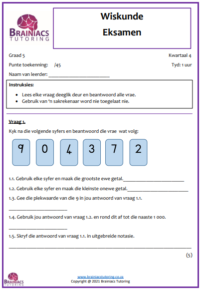 Hierdie kwartaal 4 eksamen behandel die volgende onderwerpe: